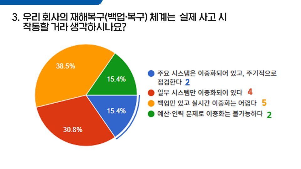 3. 우리 회사의 재해복구(백업·복구) 체계는 실제 사고 시 작동할 거라 생각하시나요?