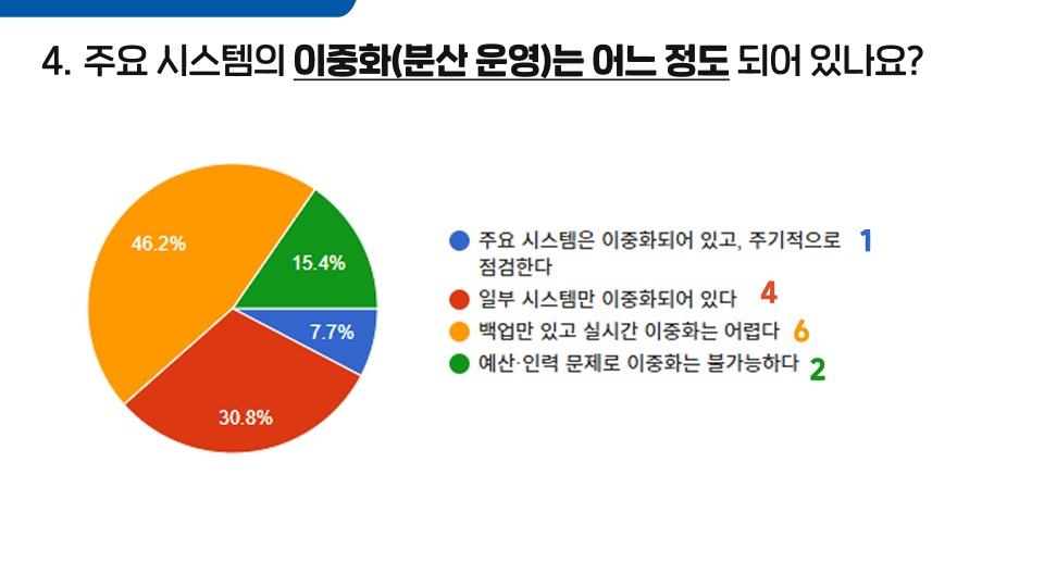 4. 주요 시스템의 이중화(분산 운영)는 어느 정도 되어 있나요?