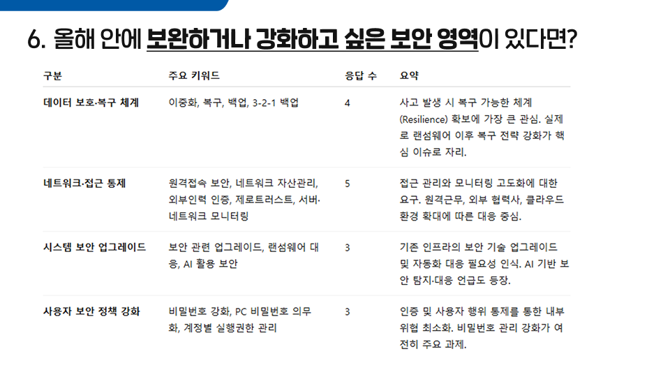 6. 올해 안에 보완하거나 강화하고 싶은 보안 영역이 있다면?
