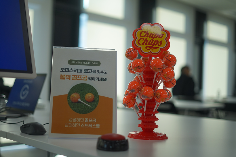 맞힌 분들께는 볼빅 골프공을, 아쉽게 놓친 분들께는 귀여운 오피스키퍼 스트레스볼을 드렸는데요,