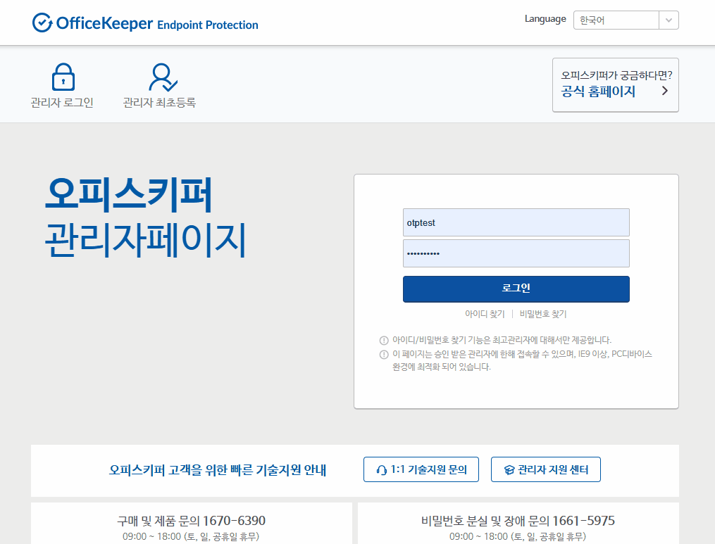 오피스키퍼가 관리자 계정 보안 강화를 위해 "2차 인증(OTP)"을 적용할 수 있도록 기능이 새롭게 추가 되었습니다.